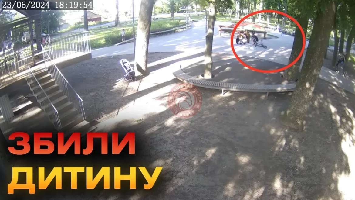 Two boys on electric scooters collided with a girl at the Chemist Park in Vinnytsia while she was chasing a ball. The incident, captured by the situation center cameras, showed the boys fleeing the scene after the accident.